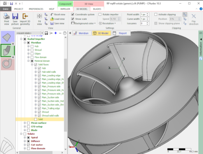 該系列節能水泵產品,經泵類專業設計軟件CFTURBO根據用戶不同的使用場景及水利參數進行專門設計,對水泵的流道,葉輪形狀參數,蝸殼外型等進行精確計算,得到泵體的初步結構,再利用Pumplinx泵類仿真軟件進行精確模擬,得到水泵運行時的具體流場模型,對設計初期的葉輪,蝸殼等三維模型進行優化設計,經過精密數控加工得到高效,可靠的水泵產品。
